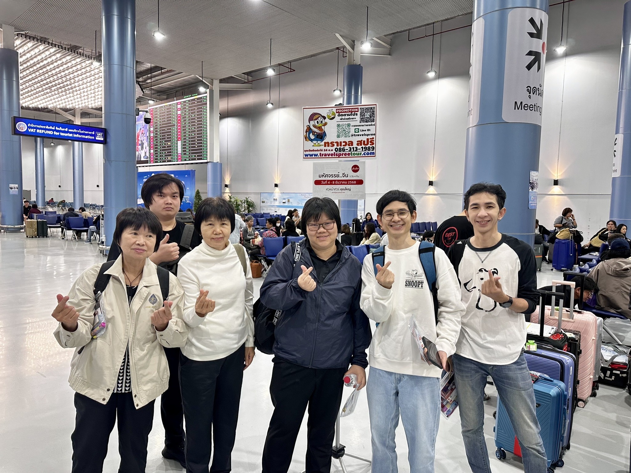 คุณตั๊ก มาส่งกรุ๊ปทัวร์ที่สนามบิน ดูแลต้อนรับ เช็คอิน และช่วยยกสัมภาระ